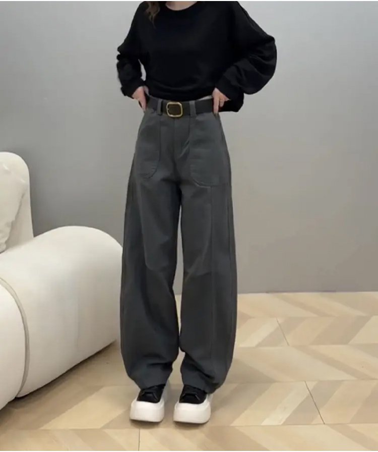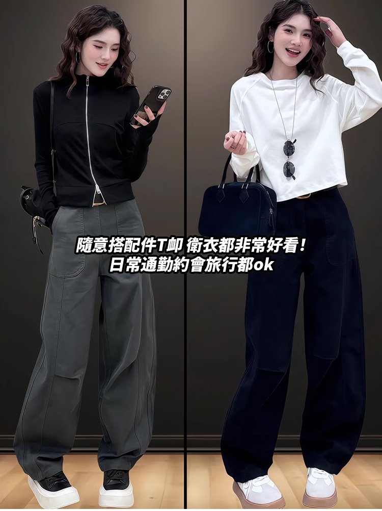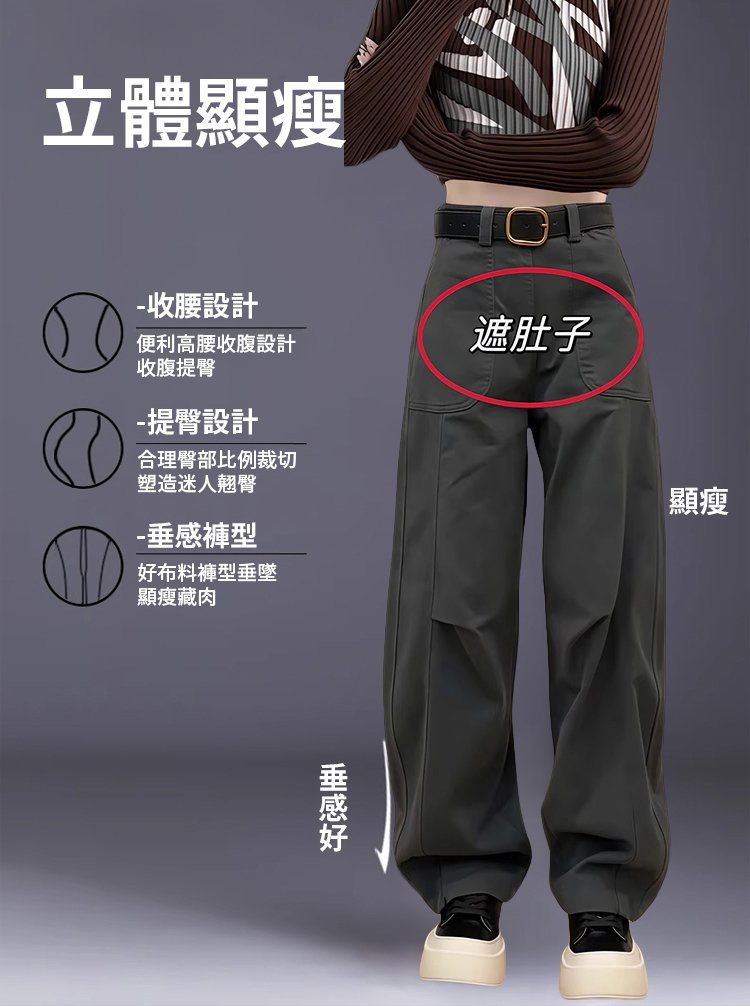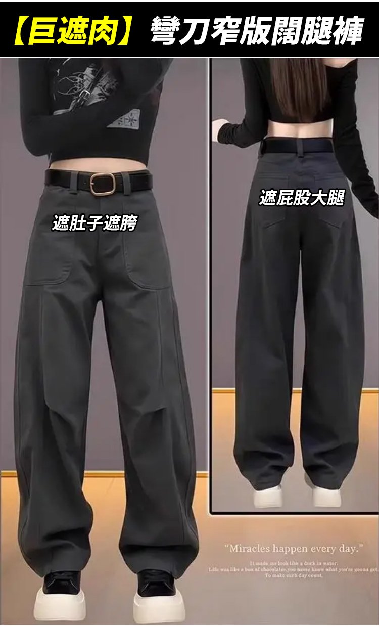 【巨遮肉】彎刀窄版寬褲